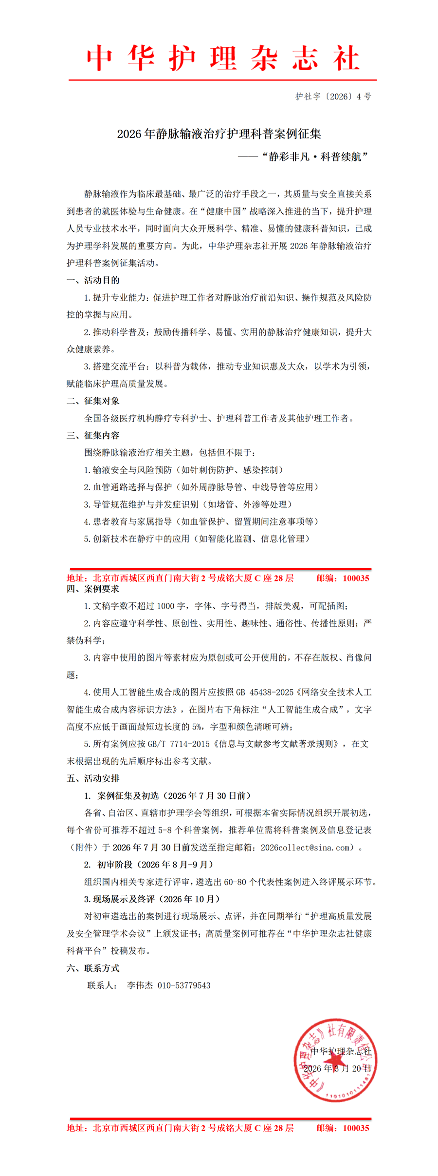 2026年静脉输液治疗护理科普案例征集活动